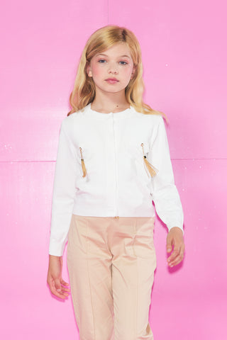 BIOTINA long sleeve cardigan with sails and tassel and hanging chains