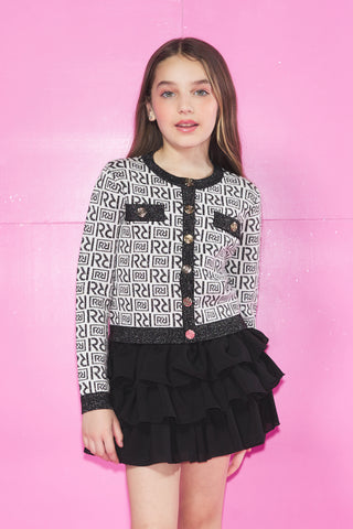 VITTORINA long sleeve cardigan with All Over Lurex Logo Patte