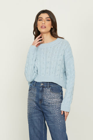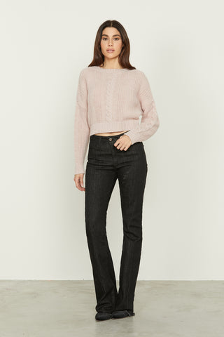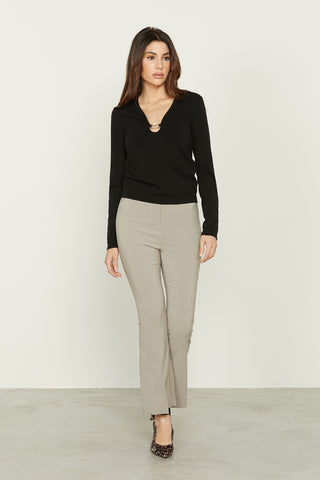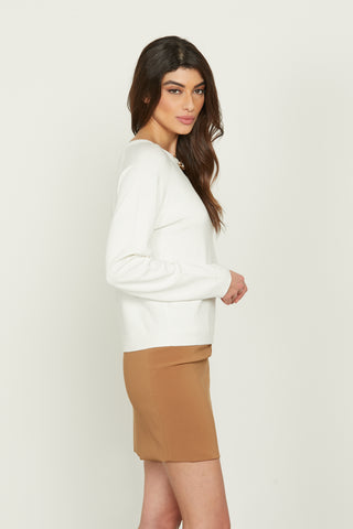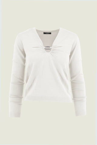 CASSANDRABIL long-sleeved v-neck sweater with curls and rhinestone application