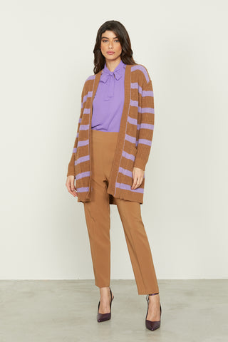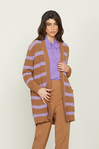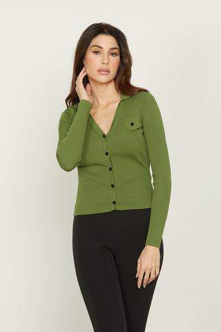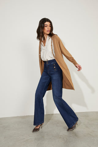 TEMI long-sleeved cardigan with collar plus flaps and contrasting ribbed button