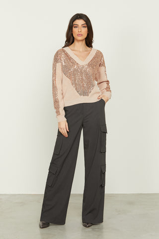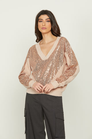 ARIZONAS long sleeve double v-neck sweater with sequin inserts