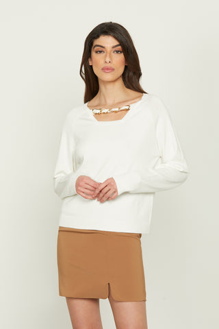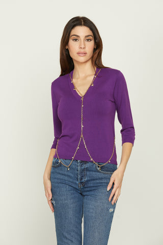 EOS 3/4 sleeve v-neck sweater with necklace and pendants