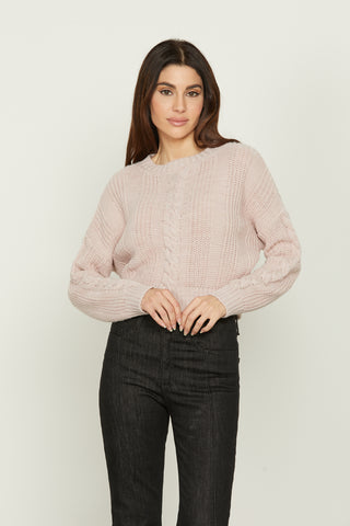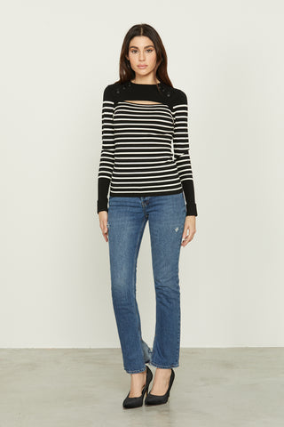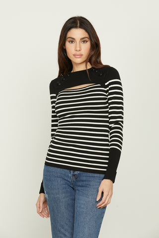 LINDA short, long-sleeved sweater with zip and contrasting buttons and ajour stitch