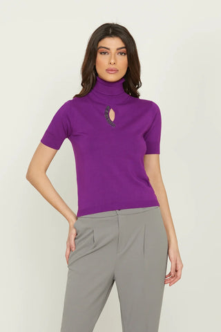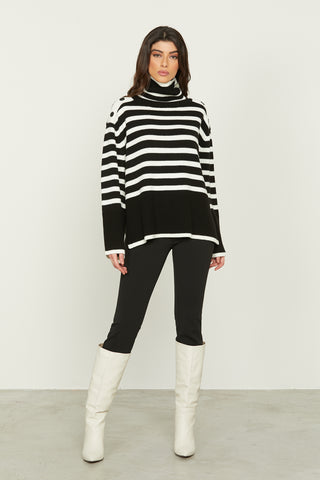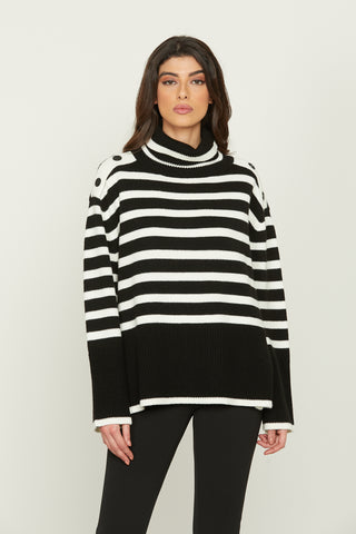 AURA long-sleeved turtleneck sweater with martingale and striped buttons
