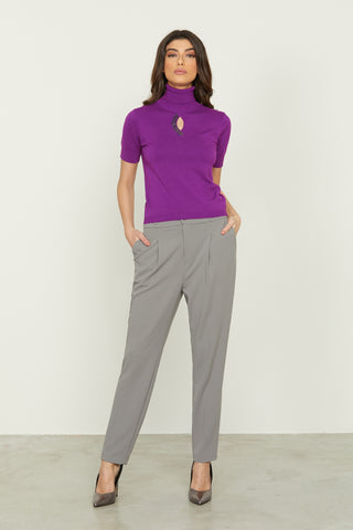 CLARISSA long-sleeved volcano collar shirt with opening and strap with buckle