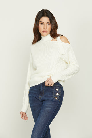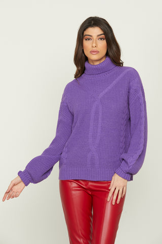 ARETUSA long-sleeved balloon-neck sweater with braided workmanship