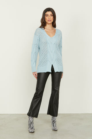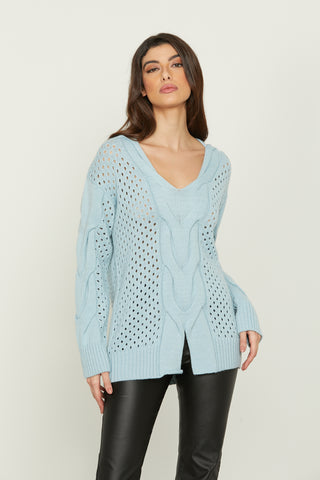 INFERI long-sleeved v-neck sweater with braids and mesh plus slit