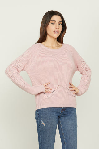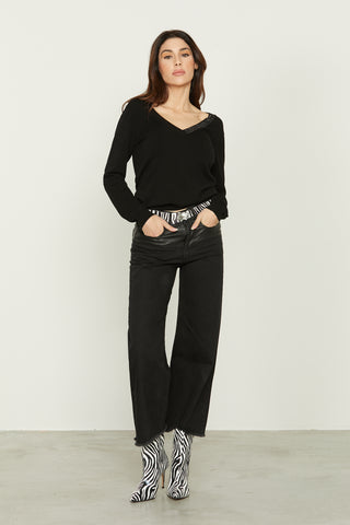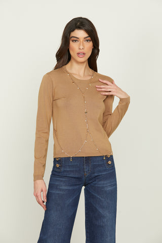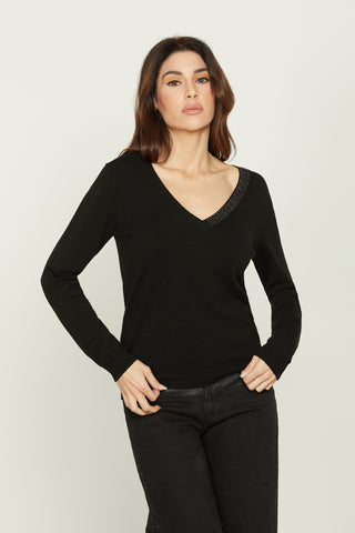 DEMETRA long-sleeved v-neck sweater with rhinestones