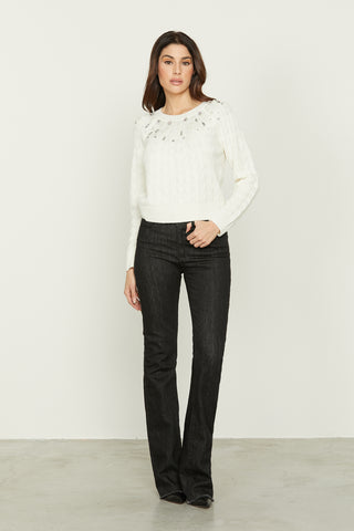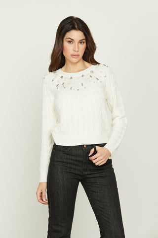 PROSPERPINA long-sleeved braided sweater with pearls and cabochons