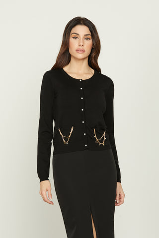JESSA cardigan with pockets and hanging trimming chain profiles