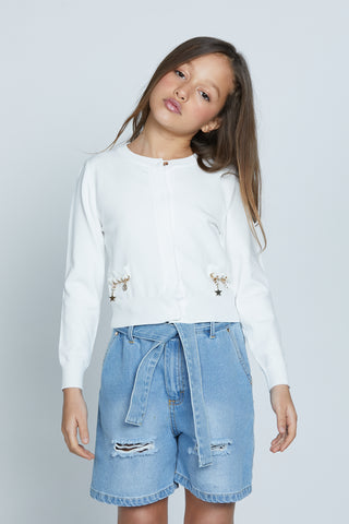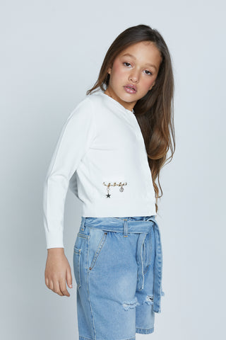 ASTERIA long sleeve cardigan with flaps plus chains with pendants plus pearl buttons