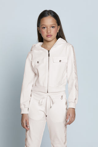 RIYADH long sleeve hooded sweatshirt with print and rhinestones