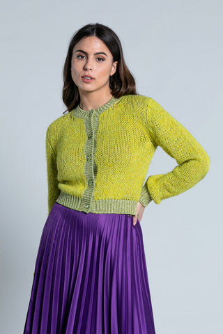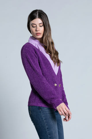 BRILLIANT long-sleeved double-breasted crossover neckline cardigan with lurex buttons