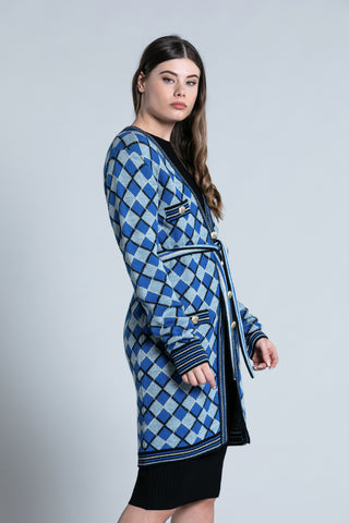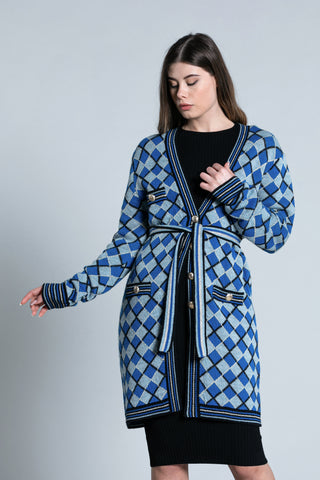 SHAN long sleeve cardigan with flaps plus multicolor rhombus buttons plus lurex