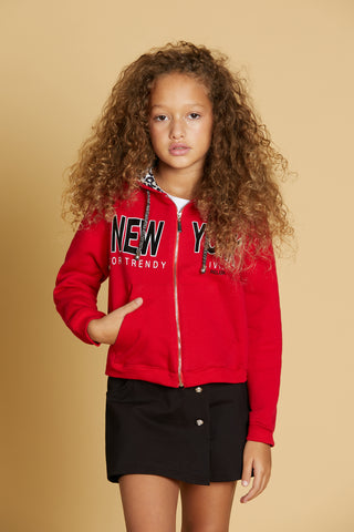 ARROW sweatshirt with ts. plus spotted hood plus zip plus drawstring plus print