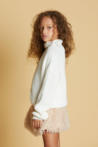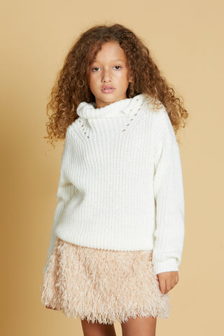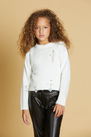 SEGIN crew neck sweater with tears plus studs and rhinestone appliqués