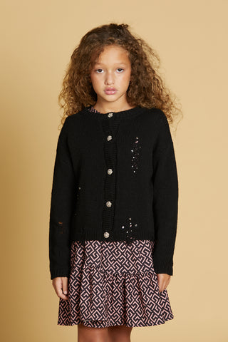 ZIBAL cardigan with buttons and tears plus studs and rhinestone appliqués