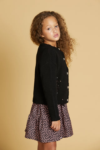 RAMMA short, long-sleeved cardigan with jewel buttons and lurex edges