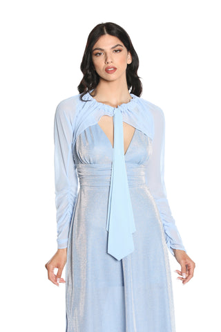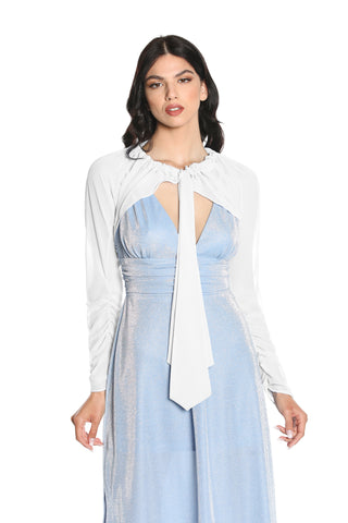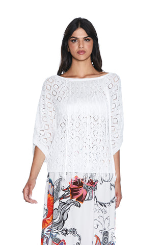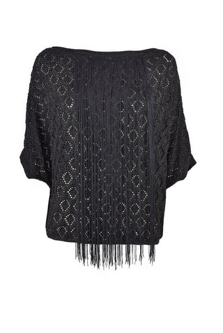 LINFAT half-sleeve kimono sweater with crochet stitch plus lurex plus fringes