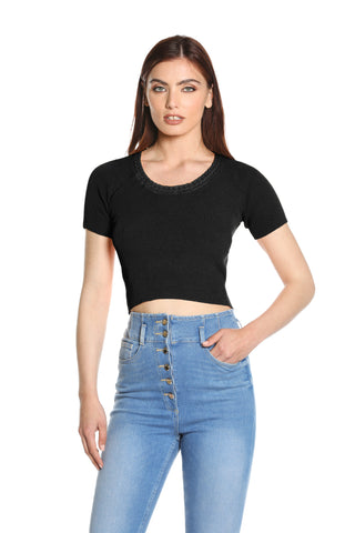 AYKRAL half-sleeved sweater with shoulder detail and ribbed button
