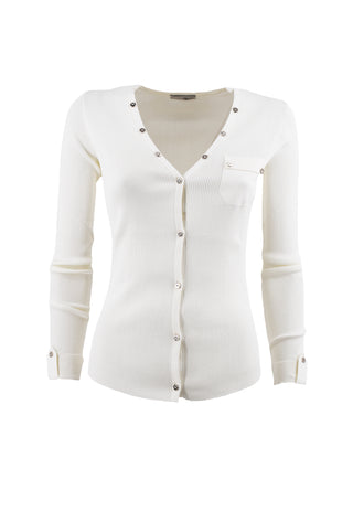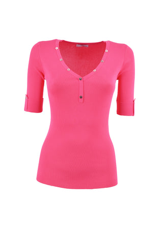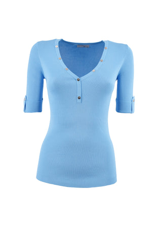 KILARM half-sleeve sweater with V-neck turn-up and ribbed buttons