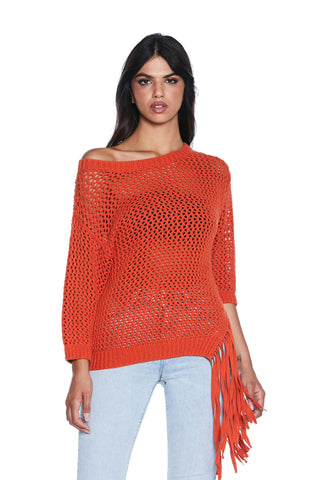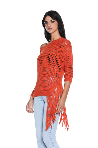 GRANSGY 3/4 sleeve shirt with slit at the bottom plus honeycomb mesh fringes