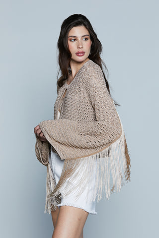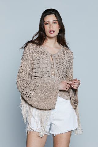 Cardigan MOSTOLES M/L Ampia con Frange L.Crochet più Lurex