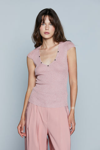 Maglia APOFILLITE_LUR M/M Scollo V Profondo con Dett.Bott. Costina più Lurex