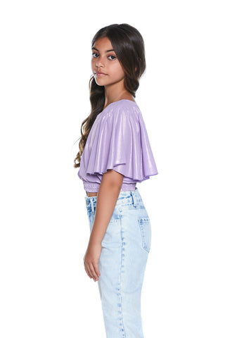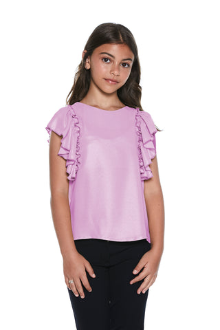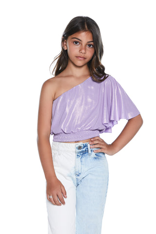 YFA short blouse with one shoulder gathered georgette ruffle coated