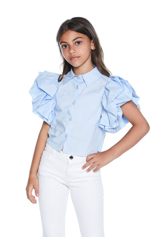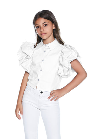 SBUFF short half-sleeve ruffle shirt with jewel buttons