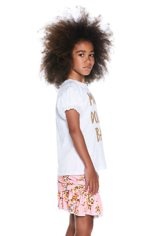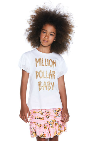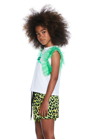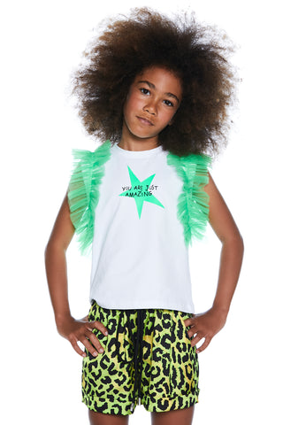 TARNESA half-sleeved tulle t-shirt with glitter writing