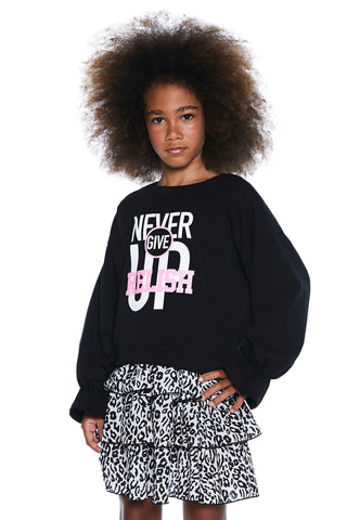 FARTEXIS sweatshirt with long, wide sleeves and ruching and ruffles with a print and glitter relish