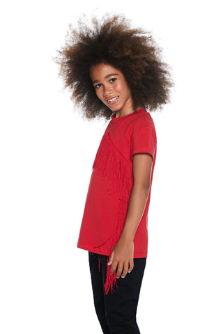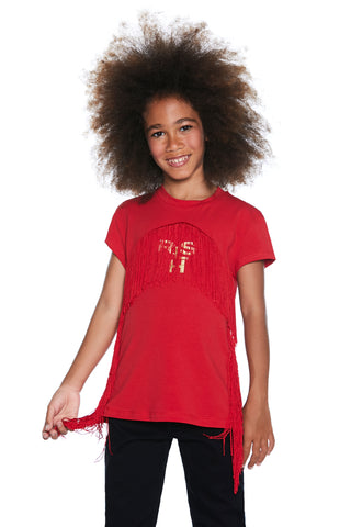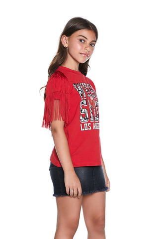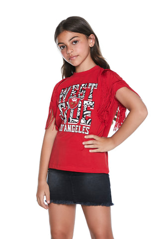 MACHEZ half sleeve t-shirt with fringes plus trimmings plus west side print