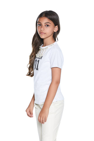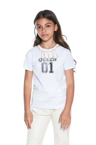 LABYLU half sleeve t-shirt with pearl necklace application and queen print