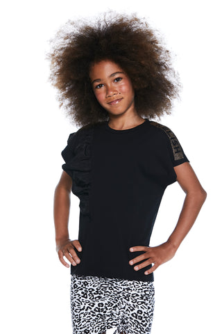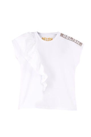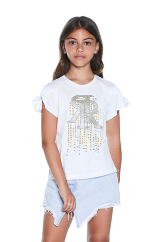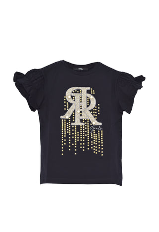 RR half sleeve ruffle t-shirt plus curls plus rr glitter print plus studs plus pearls
