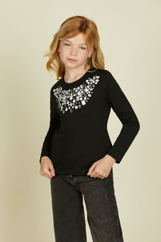 CORALLINA long sleeve t-shirt with necklace print and stones
