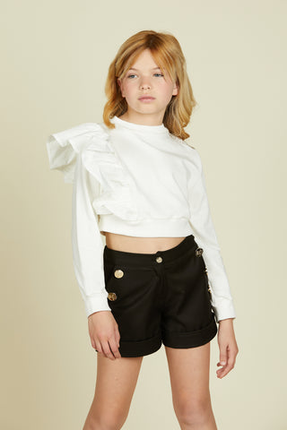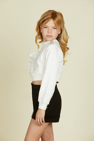 ASTRO short, long-sleeved ruffle sweatshirt with rhinestone Relish map