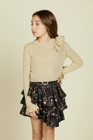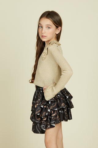 UNAKITE long-sleeved ruffle sweater with ruffles with lurex button