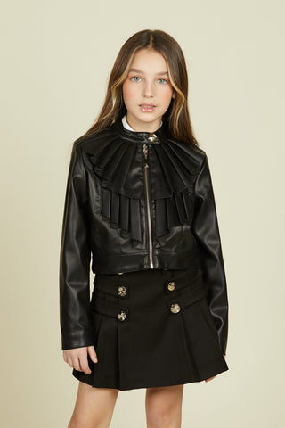 SPECIALINA long-sleeved jacket with eco-leather ruffles