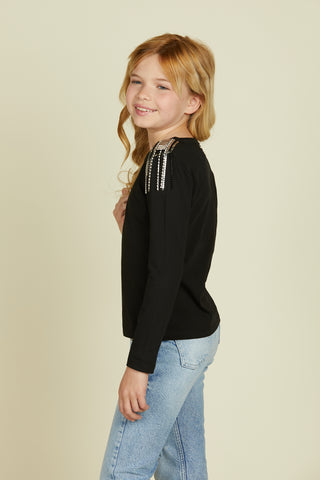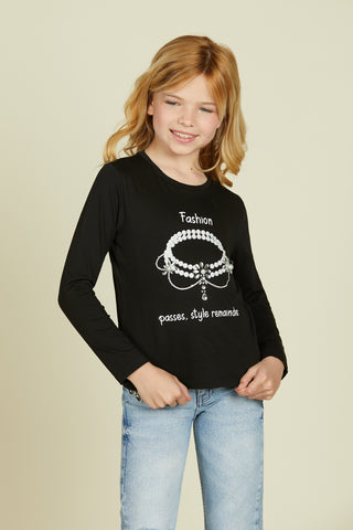 PICARINA long sleeve t-shirt with necklace print plus pearl and stone appliqués