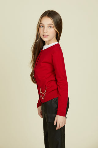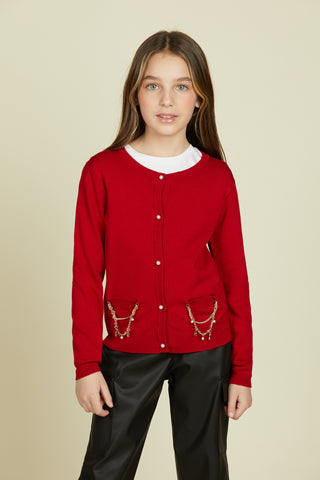 ASTERINA long sleeve cardigan with flaps plus chains with pendants plus pearl buttons