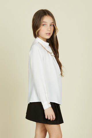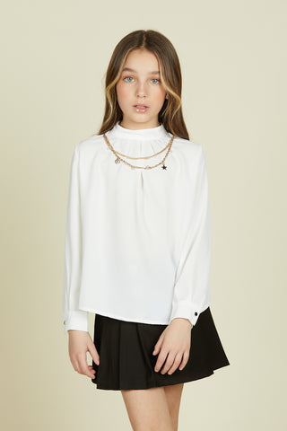 ROSSY long sleeve blouse with pleats and relish pendant necklace