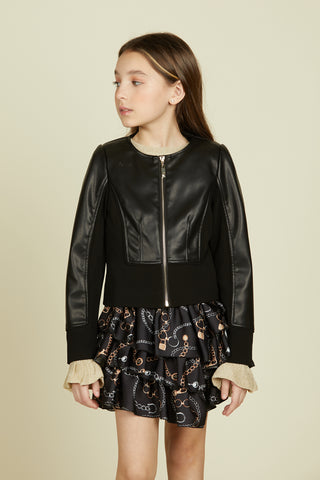NINIA long-sleeved jacket with Milan stitch inserts and eco-leather