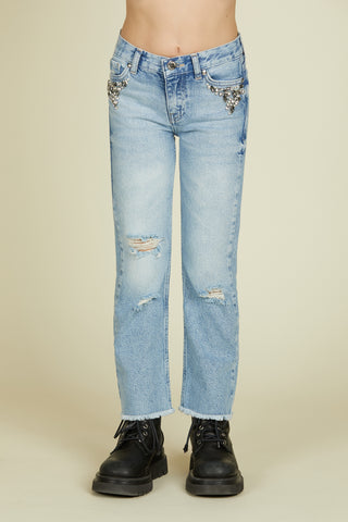 CIOKKY panta 1 bot.5ts. Frayed with broken denim cabochon application