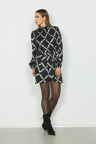 Abito TULLIA corto manica lunga con pieghe più chiusura finta con bottoni più zip schiena