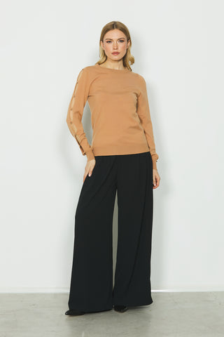 Panta IRIDE vita alta palazzo con pieghe più tasche francesi