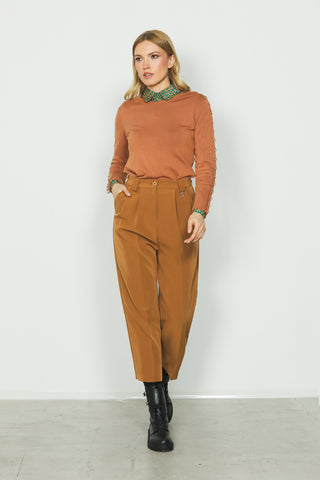 Panta TILDE vita alta palazzo con piegone fondo più tasche francesi