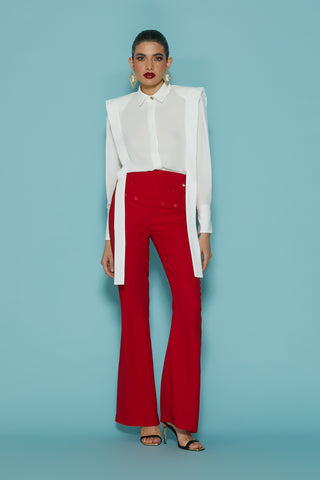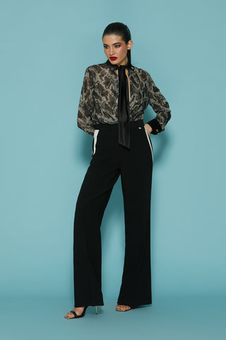 Panta CLAUDE vita alta zampa con tagli più bottoni più pattine profili raso
