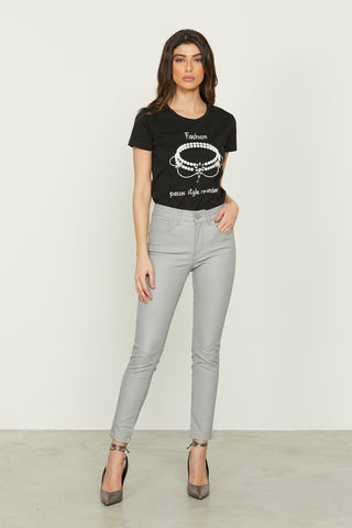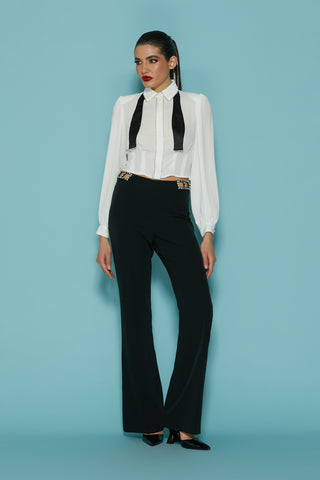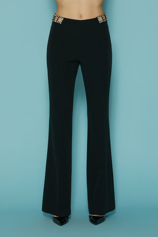 Panta BENEDETTA vita alta zampa con applicazione traforata strass