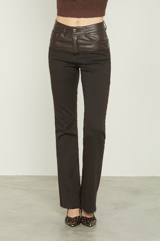 JIJE high-waisted 5-pocket trousers with eco-leather bustier and fringed hem
